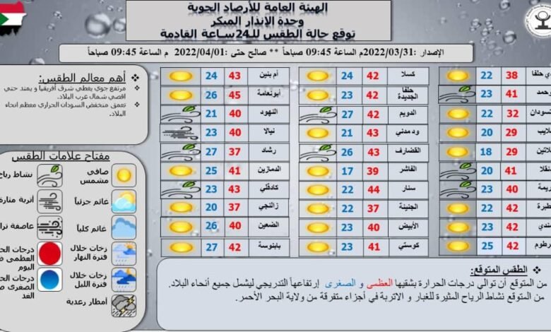 تنشر حالة الطقس اليومية بالسودان …تعرف عليها. #رام_نيوز